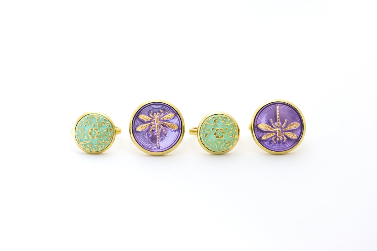 Czech Glass Button Vermeil Ring - Blue Moon Face Purple Pink Glow