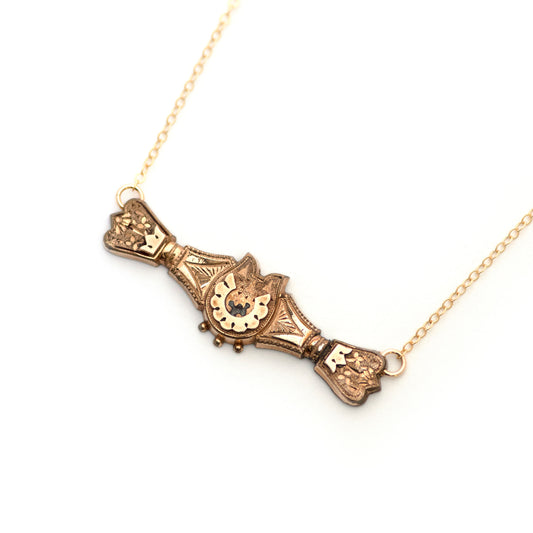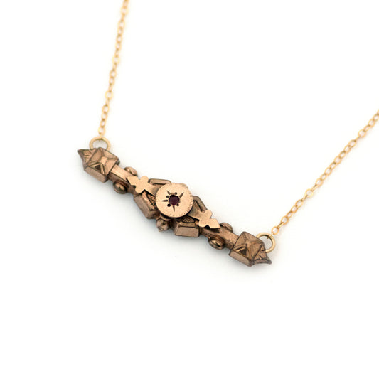 Etruscan Revival Floral Red Paste Victorian Bar Pin Necklace