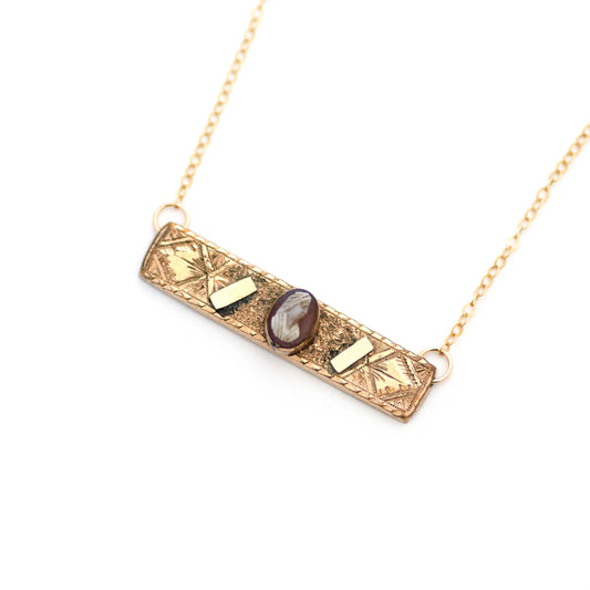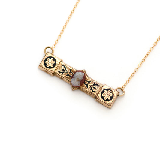 Carved Stone Cameo Victorian Bar Pin Necklace