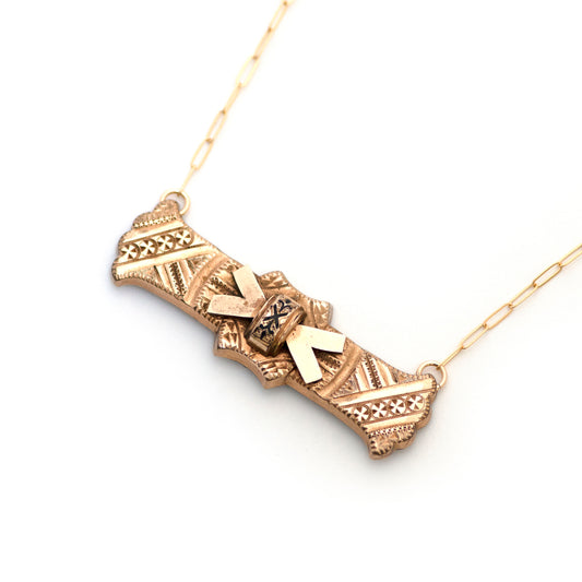 X Buckle Taille d'Epargne Victorian Bar Pin Necklace