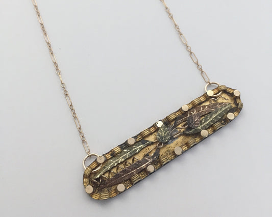 Antique Leaves Bar Pin Necklace