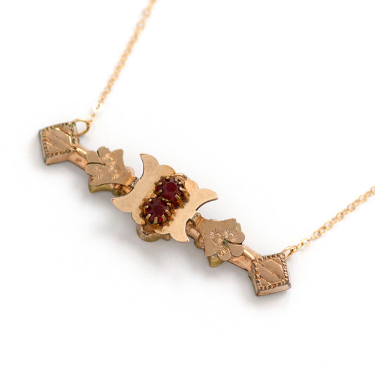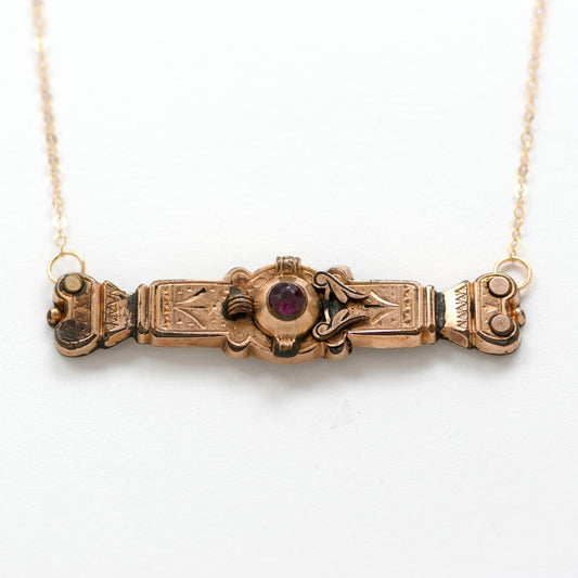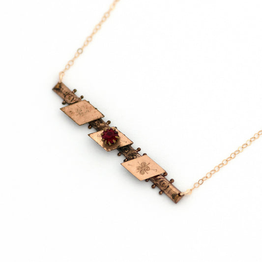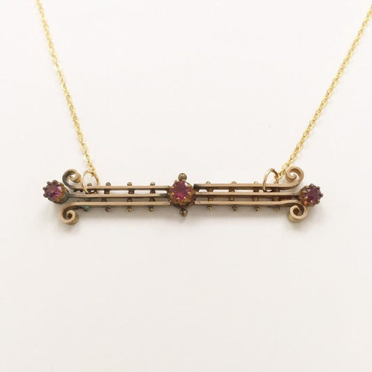 Victorian Red Paste Stone Bar Pin Necklace