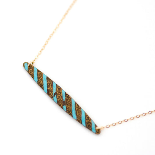 Turquoise Enamel Bar Pin Necklace