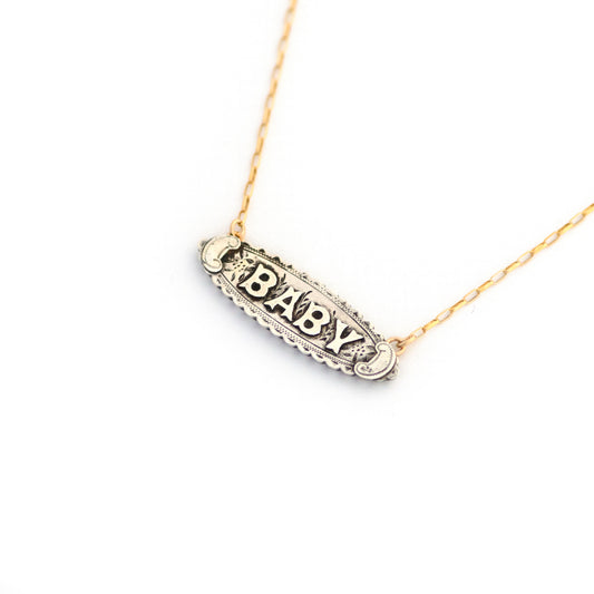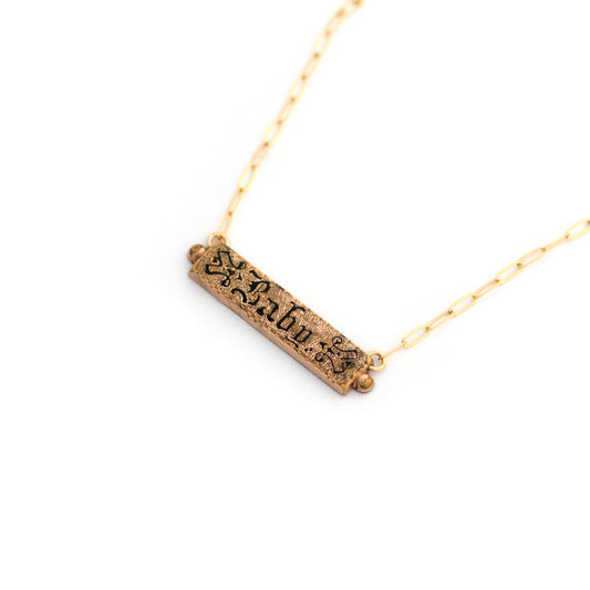 Sold outGothic Font BABY Bar Pin Necklace