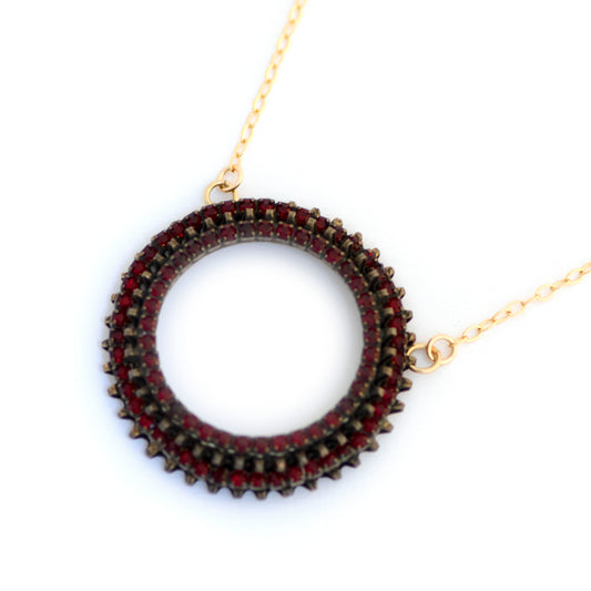 Vintage RED Rhinestone Circle Necklace