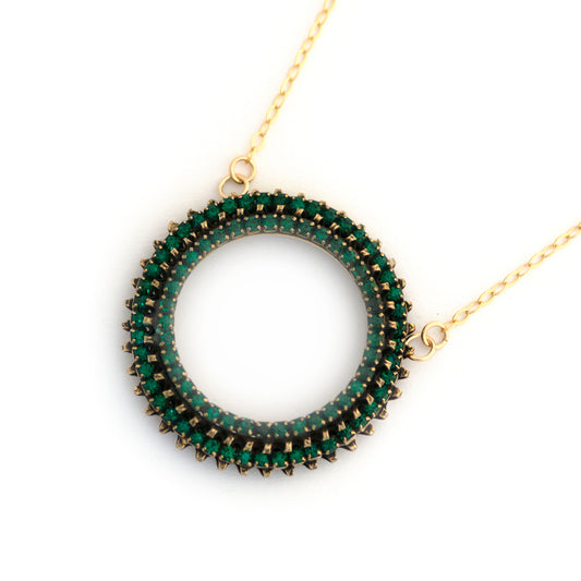 Vintage GREEN Rhinestone Circle Necklace