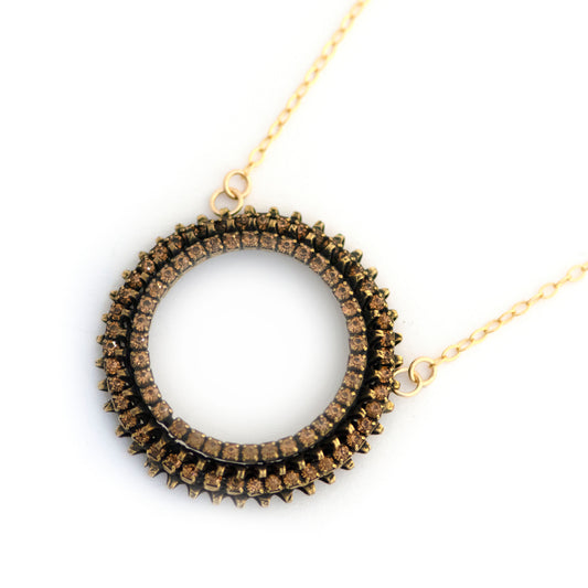Vintage CHAMPAGNE Rhinestone Circle Necklace