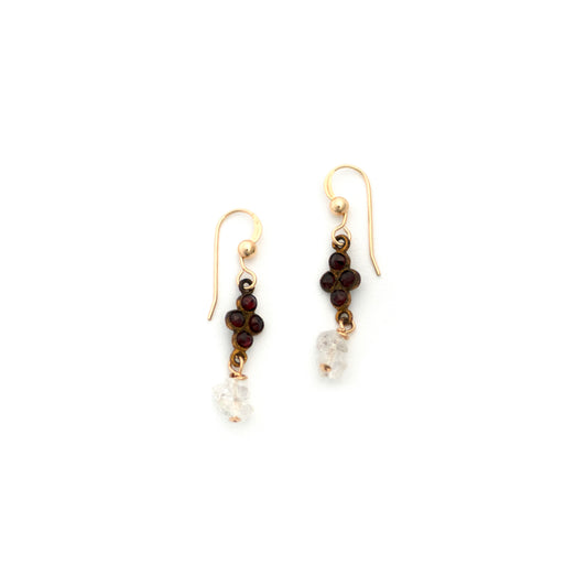 Bohemian Garnet and Herkimer Diamond Earrings