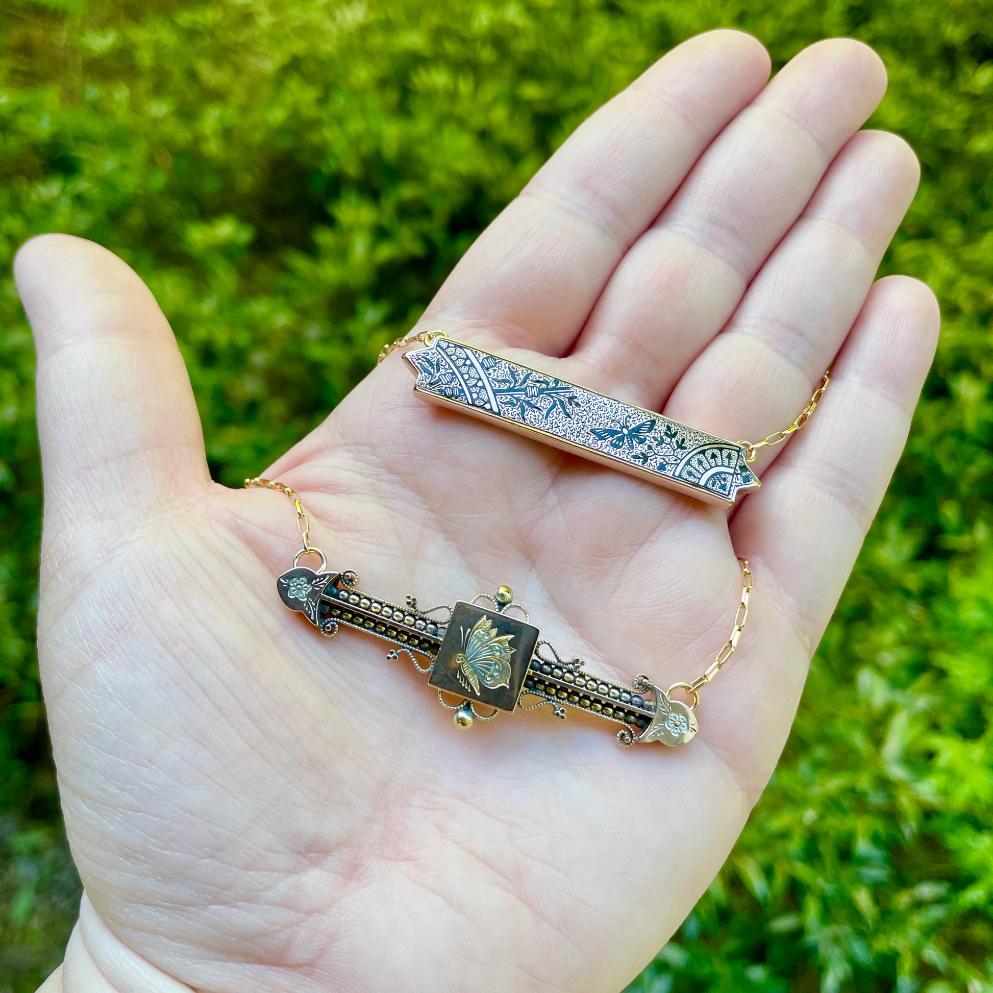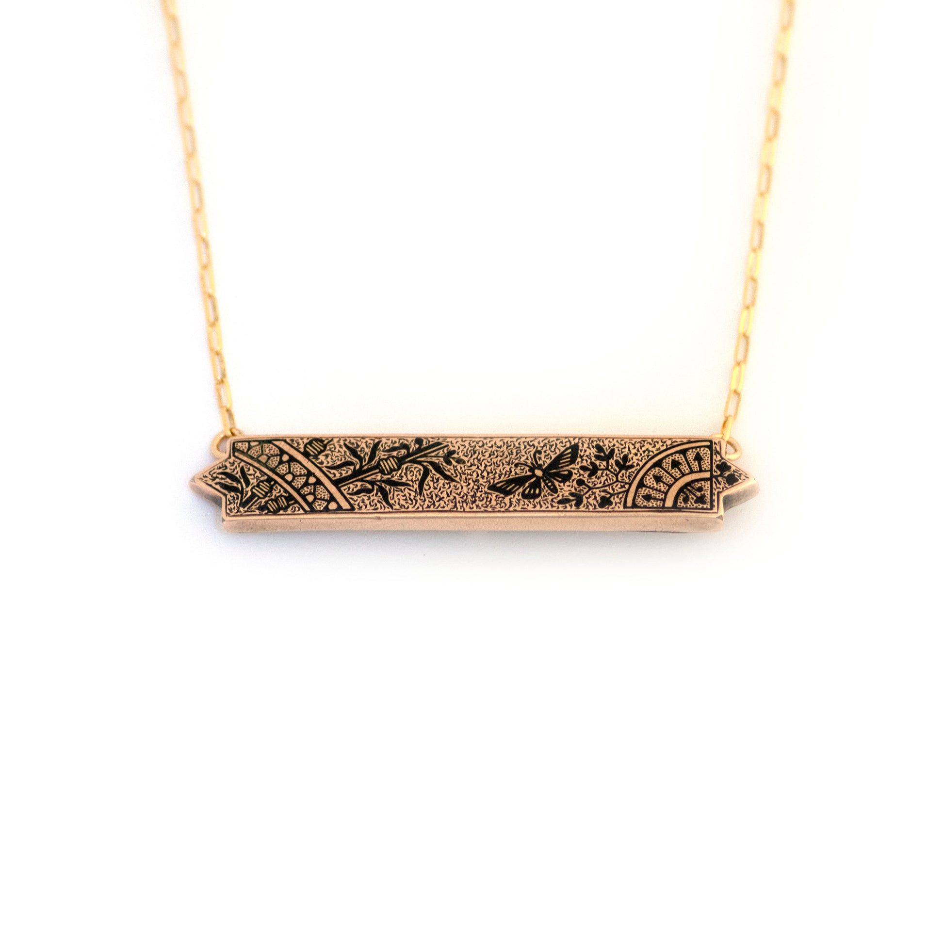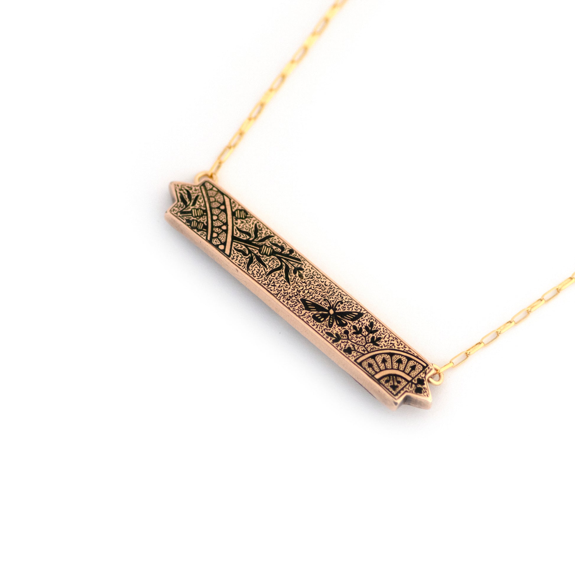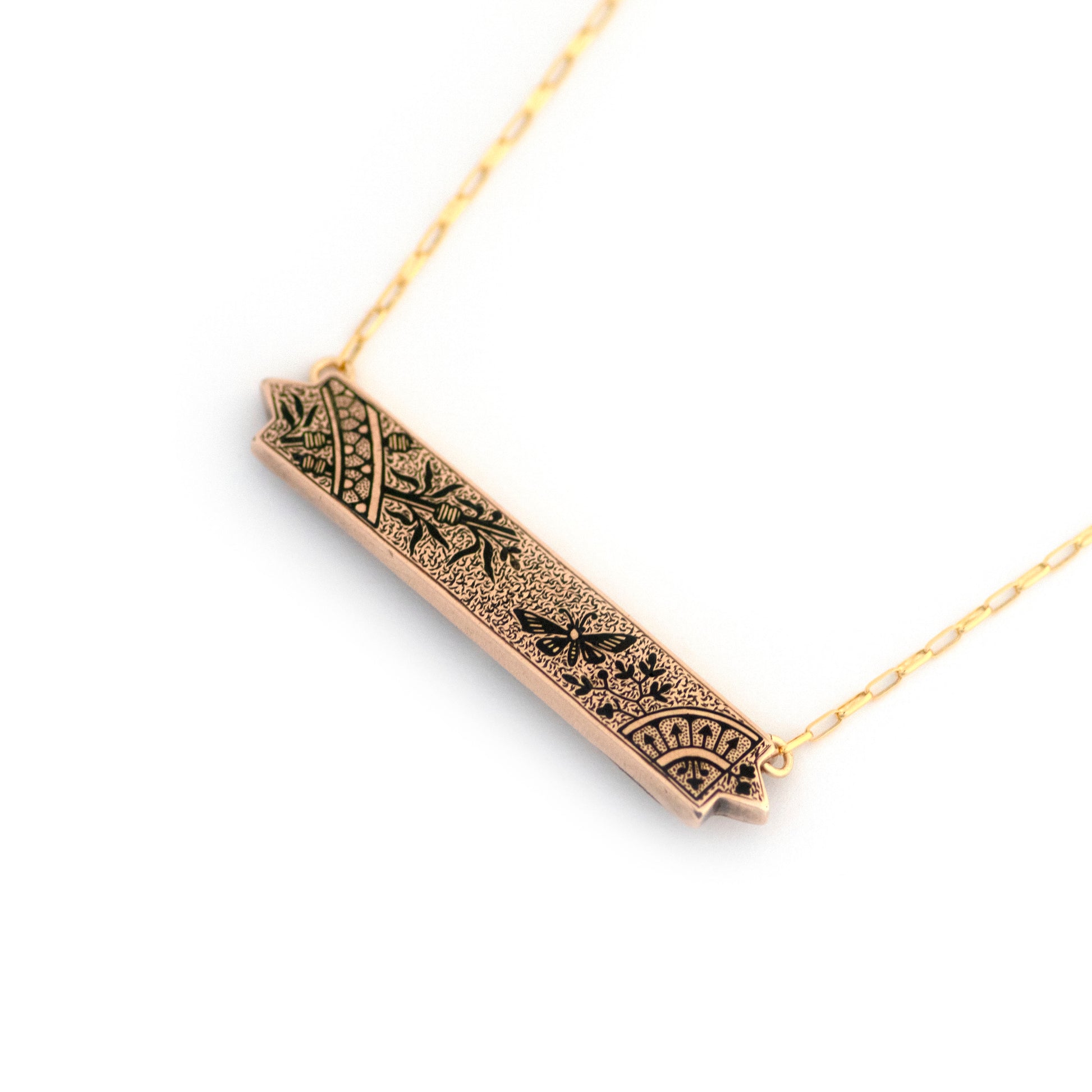 Antique 10k Enamel Firefly Butterfly Bar Necklace