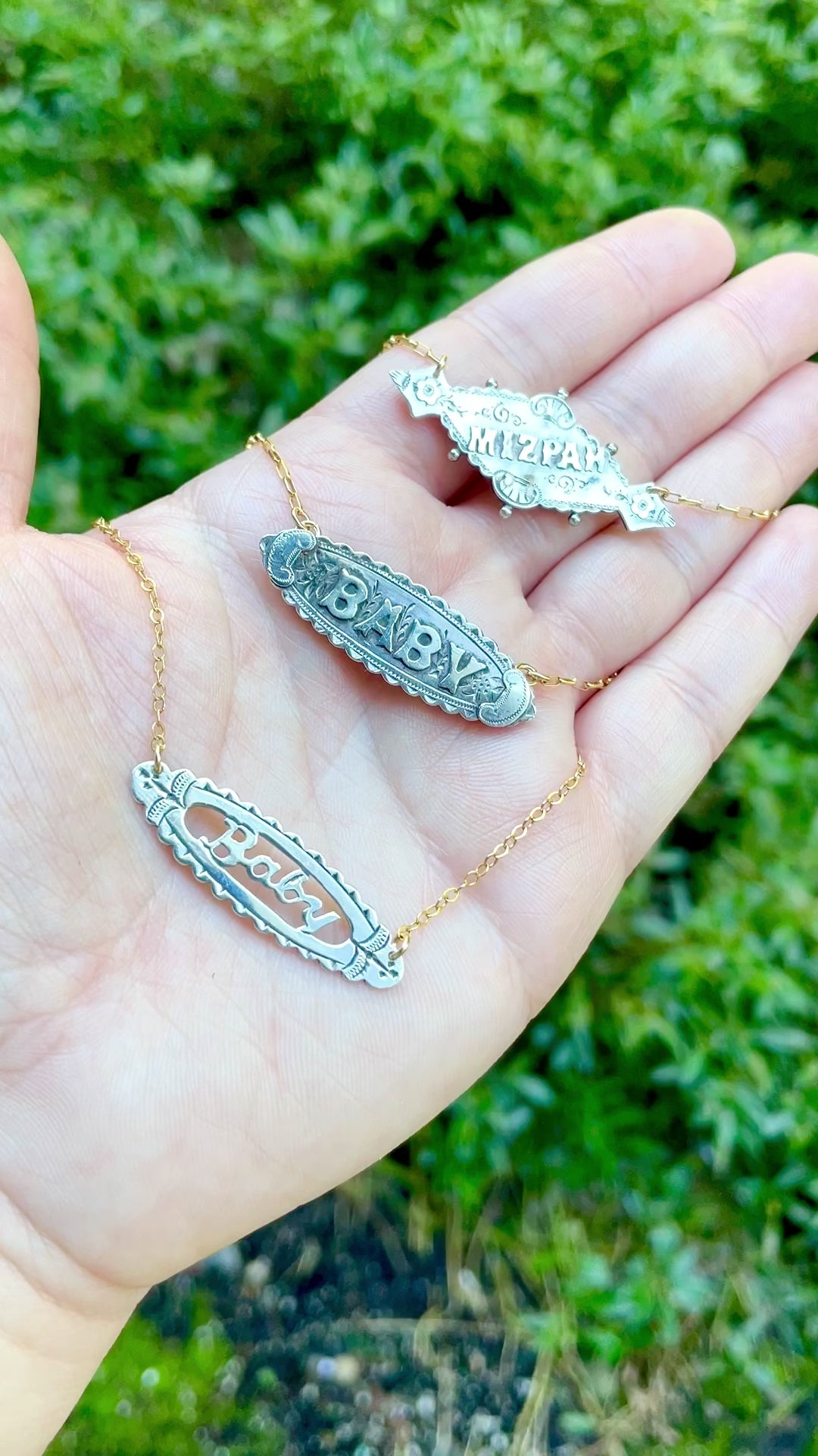 Antique Sterling MIZPAH Flowers Bar Necklace