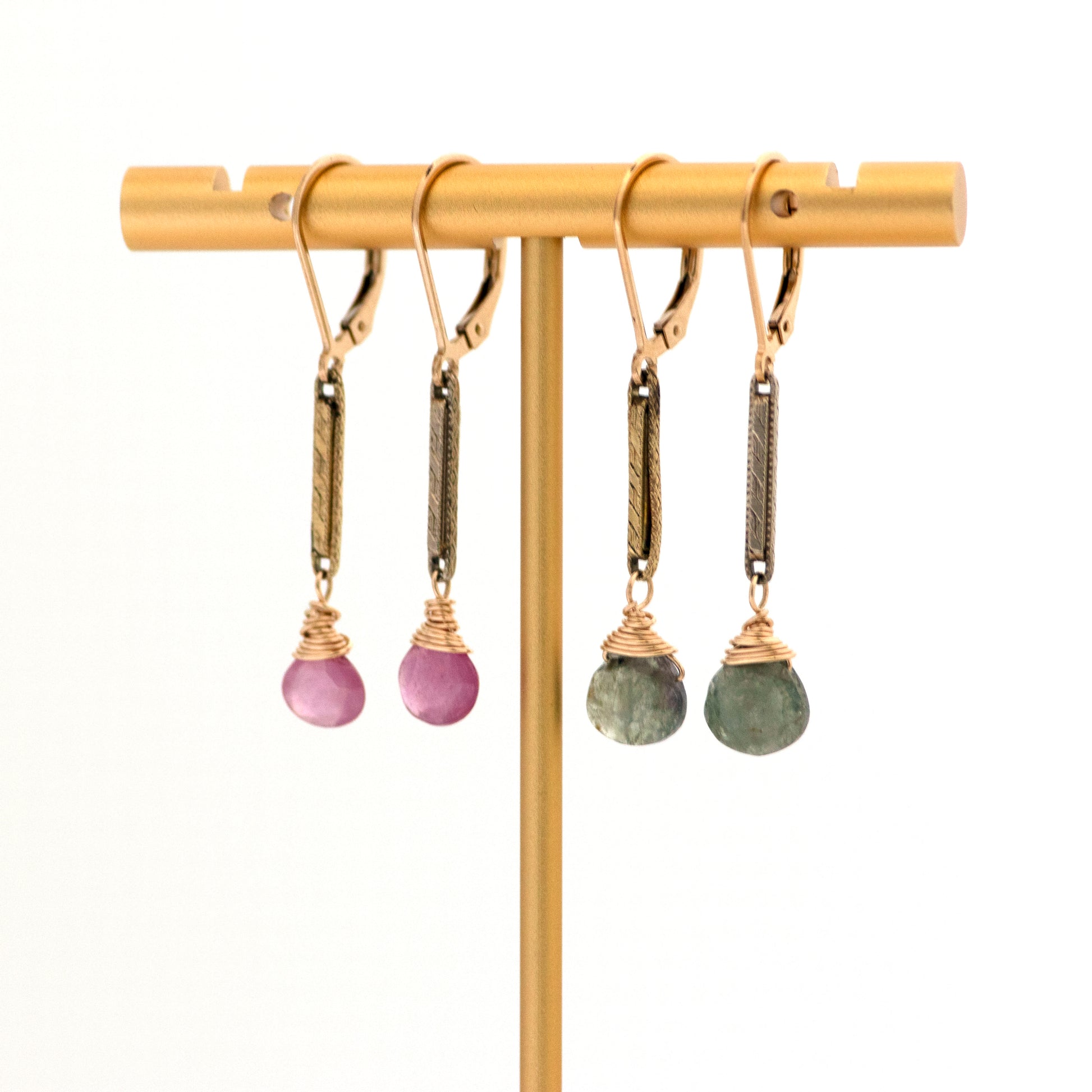 Overall earring height is 1.6”. Each drop measures 1.1” tall x 0.2” wide.