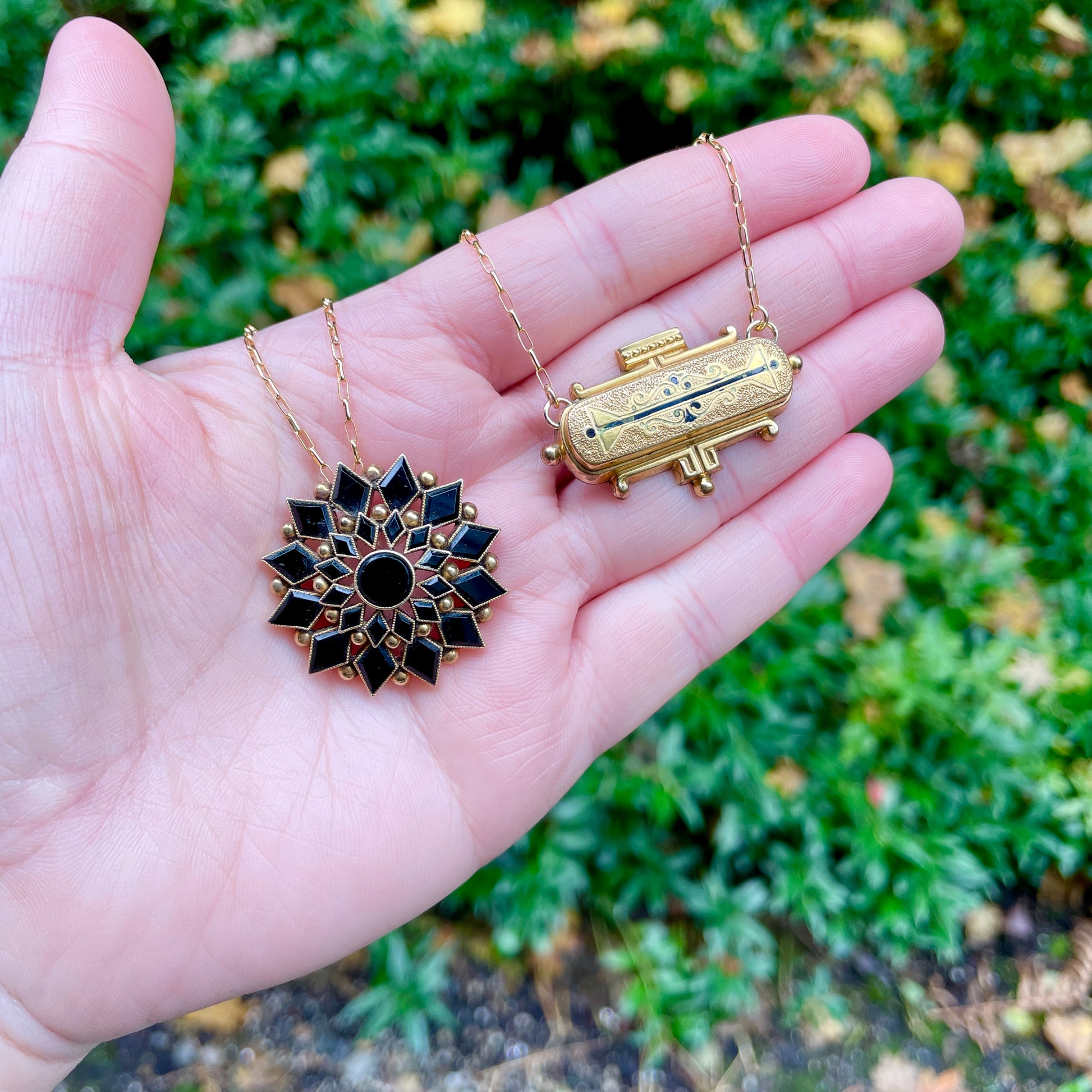 Black Enamel Taille d'Epargne Pin Conversion Necklace
