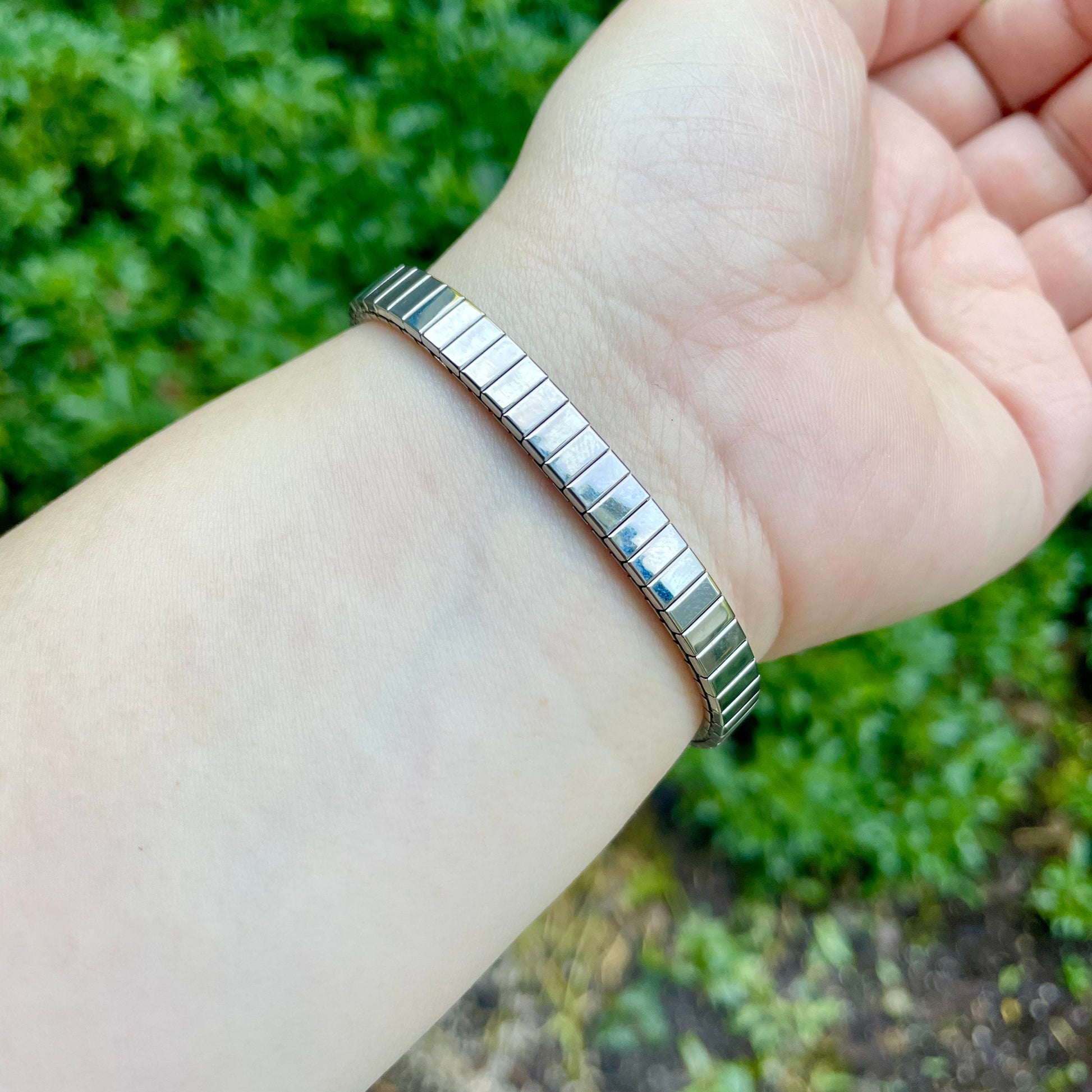 Overall bracelet length is 7.25”. Shown on my 6.25” wrist.
